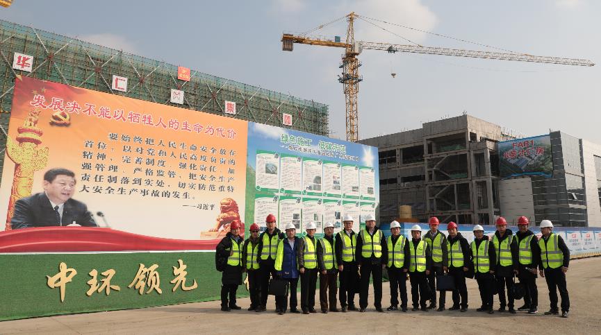 1月16日上午,南大环保总经理吕振华带领企业中高层领导及技术骨干一行20余人,前往宜兴中环领先集成电路用8-12英寸半导体硅片项目现场参观交流。
